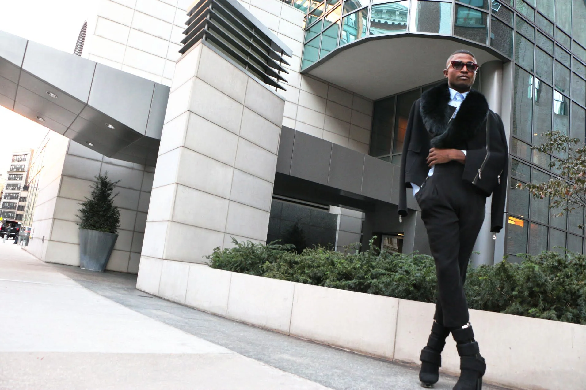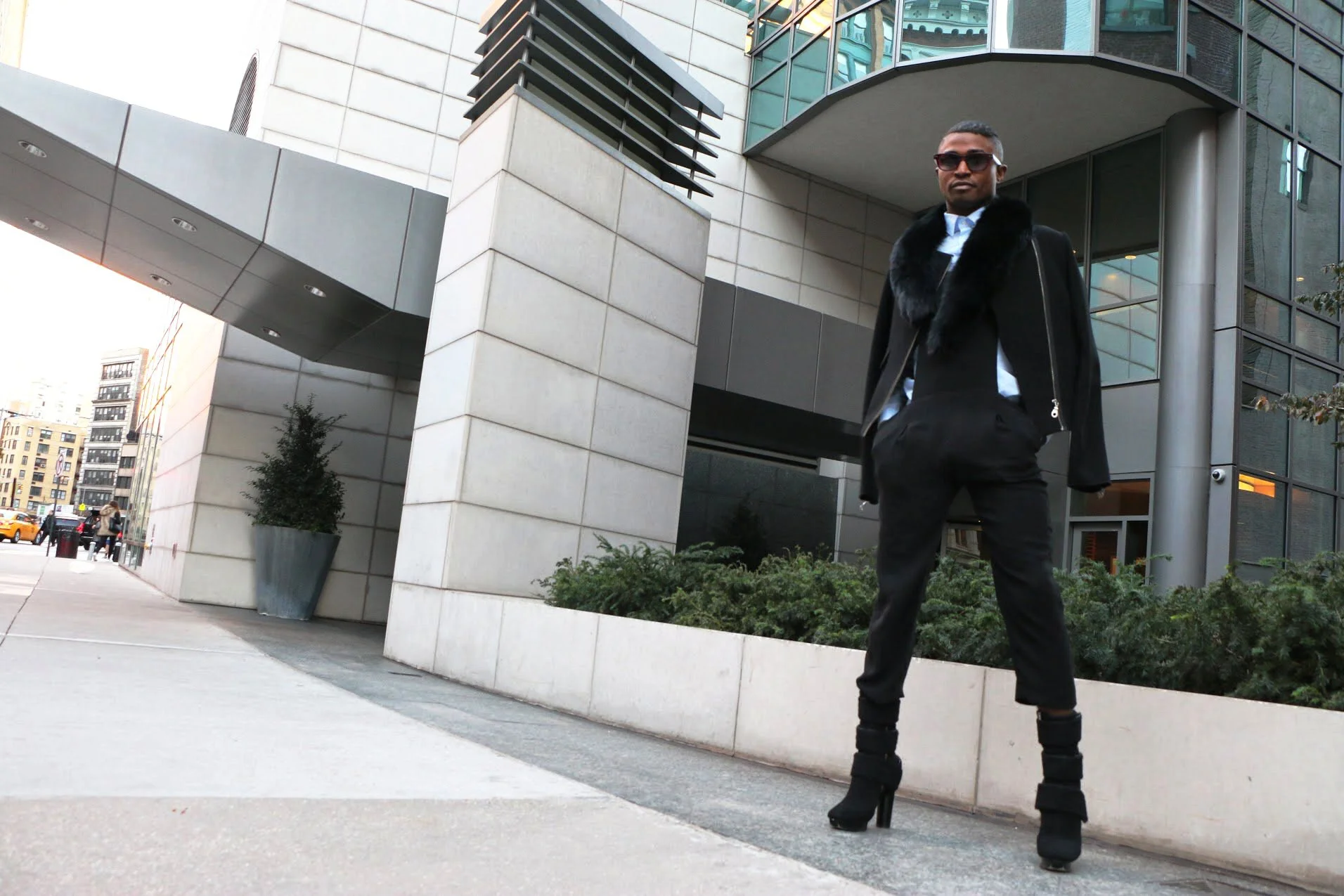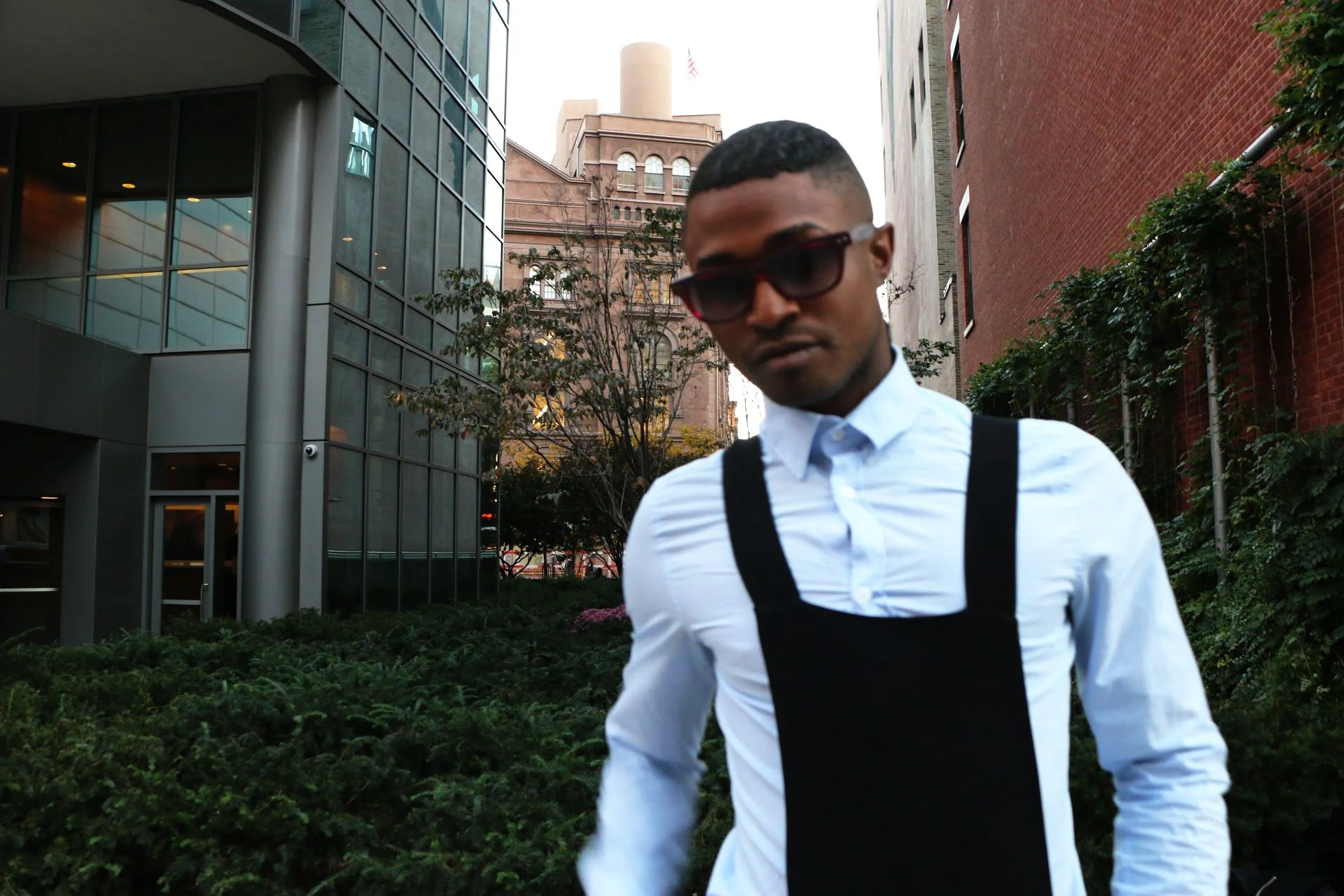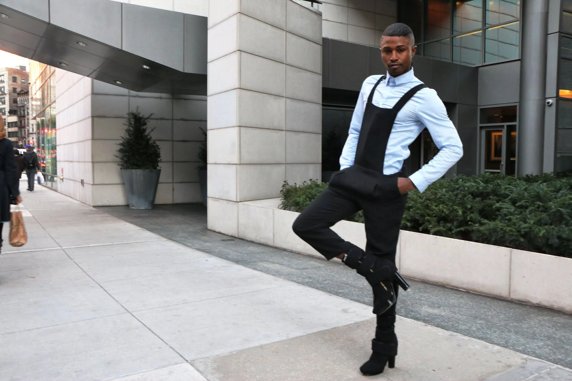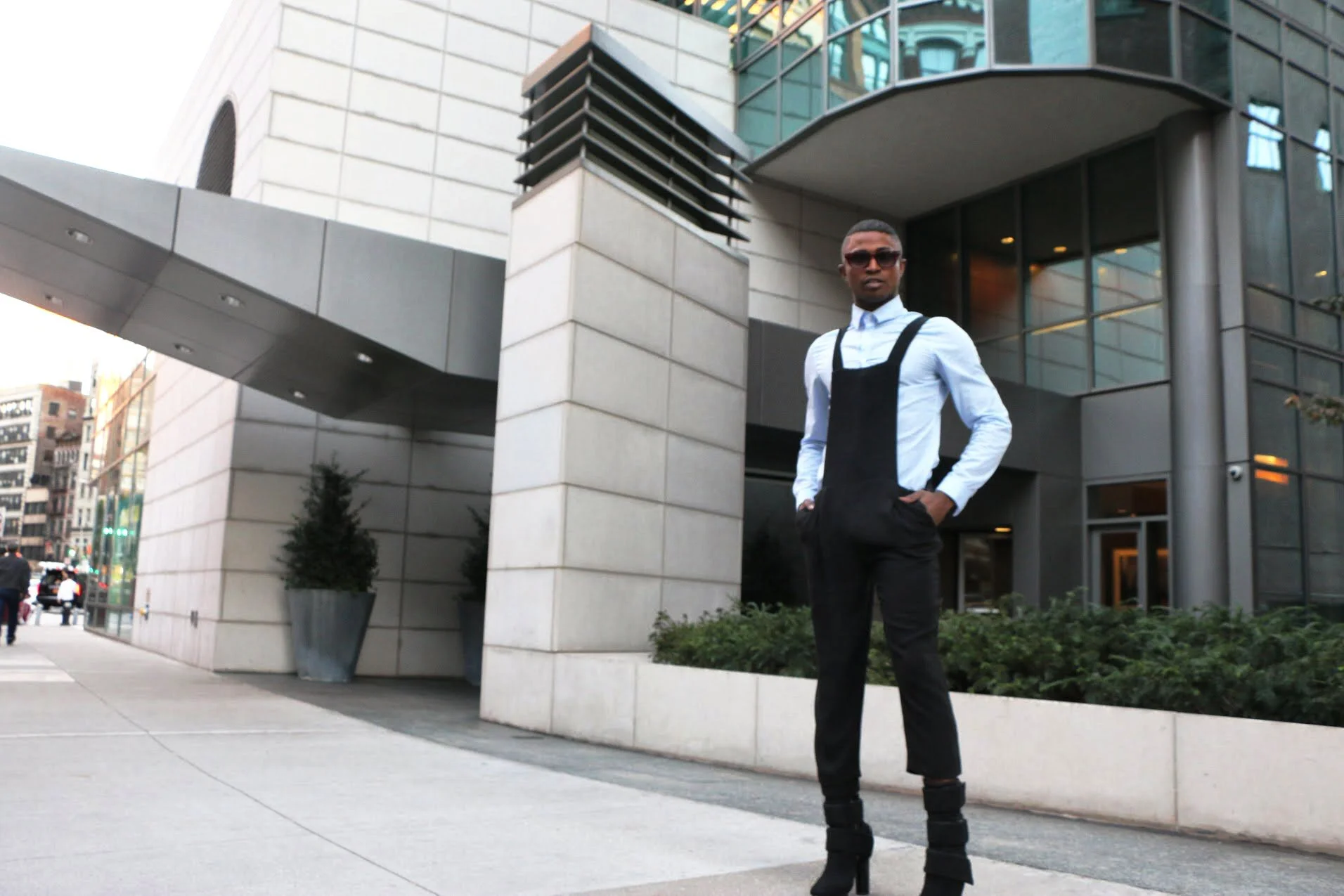 Wearing: Sunglasses Rowley| Jacket L.A.M.B| Button down H&M| Overalls ZARA| Shoes Calvin Klein